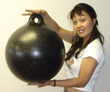 Our Smaller black Mussel Bouys are individual 16” diameter balls with a single attachment lug to secure them. These bouys can be used to support longline systems as well but are not capable of supporting the weight of heavier “stacked tray” growing apparatus which are sometimes hung from the Double-Line Barrel bouy supported style.